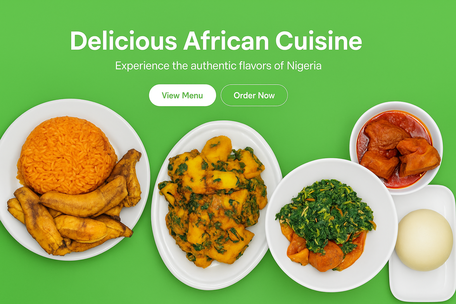 Welcome to a celebration of African flavors! Each dish is prepared fresh, using traditional recipes and ingredients that bring the taste of home to your table.